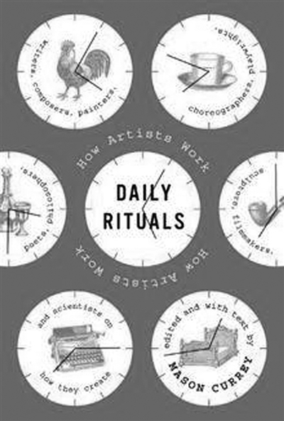 艺术创作的神秘让人们总想一窥过程的究竟,美国记者梅森·科瑞(Mason Currey)的新书《每日惯例:艺术家怎么工作》(Daily Rituals: How Artists Work)源自他的同名博客,以撷取日常片段,揭示了百余位作家、画家、音乐家、编舞家、建筑师如何开始一天的生活。有些平淡无奇,每天起床,在书桌前连续工作数小时。但许多如人所料,怪癖连连。比如,威廉.H.加斯生气时写的东西最好,纳博科夫用铅笔在索引卡片上写作,然后筛选整理,席勒喜爱烂苹果的气味,那可以激发灵感。有的女作家,像西尔维娅·普拉斯和艾丽丝·门罗,学会一边抚养孩子一边工作,有些是夜猫子,像卡夫卡、塞缪尔·约翰森。格特鲁德·斯泰因和理查德·赖特喜欢在户外写作,托马斯·沃尔夫一边自慰一边站着写东西,普鲁斯特和卡波特则是躺在床上写。不少艺术家借助咖啡、酒精、甚至迷药,增进创造力,亦有很多人视锻炼身体为必需,奥利弗·萨克斯喜欢游泳,狄更斯每天下午走三小时路。这些千奇百怪、迥异不同的惯例,自然未能解开艺术创作之谜,但却展现出另一幅创作背后的多姿图景。