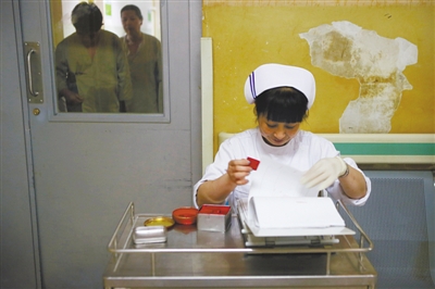 9年前,陈红梅来到回龙观医院。她遇到过各种突发情况,有患者会在输液时拔下针头扎向护士。“这样的病人如果不住进医院,家人是难以控制的。”陈红梅说。