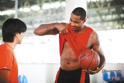 新京报讯 (记者孙琳琳)NBA球星“小甜瓜”卡梅隆·安东尼前晚亮相上海,为其主演的首部电影《神奇》宣传。安东尼表示,有意借该片进军影坛,为此他还在片中亮出了文在肚皮上的名言“Me Against the World(我与世界为敌)”。