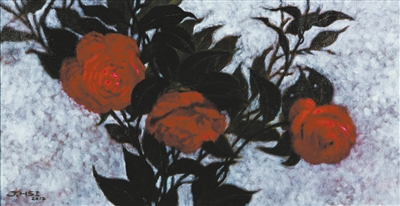 《红山茶》,席慕蓉油画,捐赠者:席慕蓉