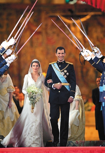 2004年5月22日,一场20多年来欧洲王室最盛大的婚礼在西班牙马德里举行。英俊帅气的西班牙王储菲利普迎娶王妃莱蒂齐亚,后者成为西班牙历史上第一位平民王妃,而且是第一位离异过的王妃。