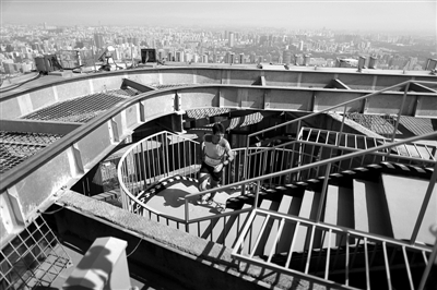 昨日,在北京第一高楼国贸大酒店,世界摩天大楼高空竞跑的唯一官方组织——国际竞速联盟(ISF)在中国内地的首届垂直马拉松世界巡回赛举办。该楼高330米,82层,共2041级台阶。来自世界各地的600位选手参赛。28岁的德国选手Thomas Dold以9分55秒赢得冠军。 新京报记者 赵亢 摄影报道