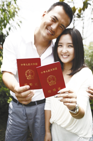 何洁在微博上晒结婚证。