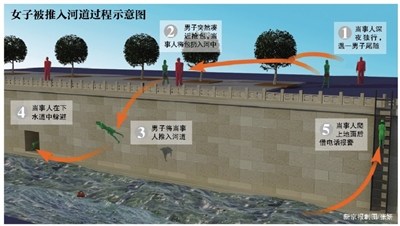 事发地位于河道东岸,沿线无路灯和摄像头。据附近居民介绍,晚间,河道东岸光线很暗,“一般都从河道西岸走,亮一些”。