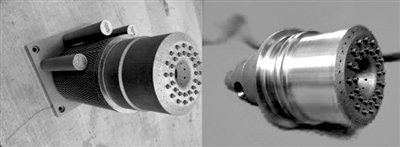 利用“选择性激光熔融”工艺,用高能激光束把镍铬合金粉末熔化,再根据计算机设计的3D模型“打印”出喷射器(左图),经过抛光后得到使用级别的喷射器(右图)。