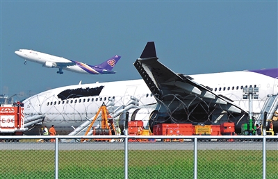 泰国机场有限公司说,事故造成一条跑道中大约300米的区域受损,剩余2000米部分仍可供波音737及以下规模飞机起降。公司预计,受损跑道修复需要大约5小时,但这要等待出事航班挪出跑道,预计需要大约48小时。综合新华社/专稿