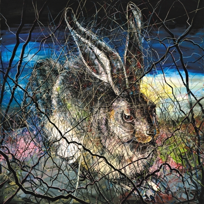 2012年所作《兔子》,此画因酷似德国画家丢勒的作品而备受争议,曾梵志解释这是在挪用基础上的再度创新。C特18-C特19图片均由曾梵志工作室提供