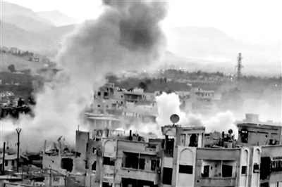 10日公布的视频显示,叙利亚大马士革地区,楼房遭重型火炮袭击,现场浓烟滚滚。