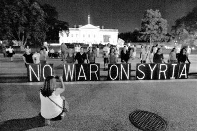 10日,华盛顿,美国反战民众在白宫前抗议对叙动武。