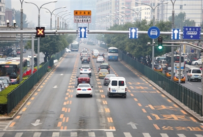 因闯入造成事故需负全责,开通初期不对误闯司机处罚;朝阳路晚高峰通行率提高10%
