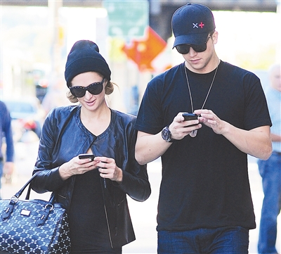 日前,帕里斯与男友戴情侣眼镜逛街,各自玩手机变“低头族”。