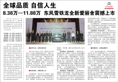 8.38万—11.88万 东风雪铁龙全新爱丽舍震撼上市