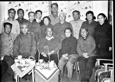 1982年11月,胡风八十寿辰时,与前来看望的路翎、绿原、牛汉(后排中间高个者)等友人合影。人民文学出版社供图
