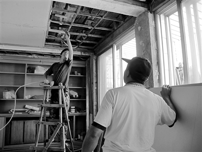 由于吊顶内要走电气管线,所以木制吊顶一定要经过防火处理。新京报记者 王远征 摄