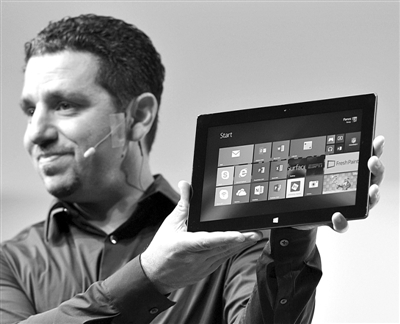 9月23日,微软副总裁Panos Panay在纽约发布会上手持Surface二代产品。 图/CFP