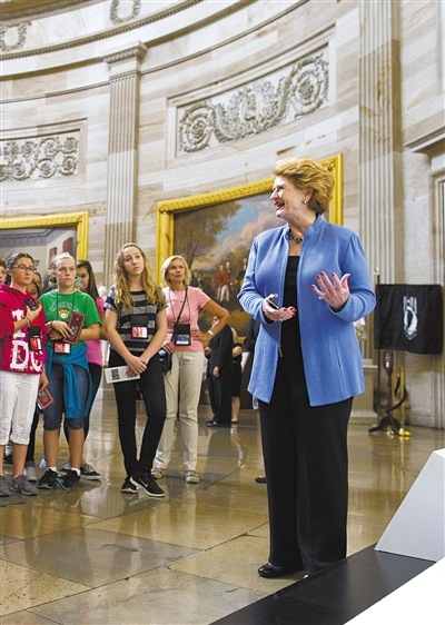 10月3日,美国华盛顿,参议员带着游客们参观国会山。这些工作本该由政府雇员负责,不过由于联邦政府关门,议员们只好亲自当导游。
