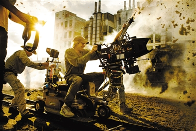 迈克尔·贝在香港拍摄地的工作照