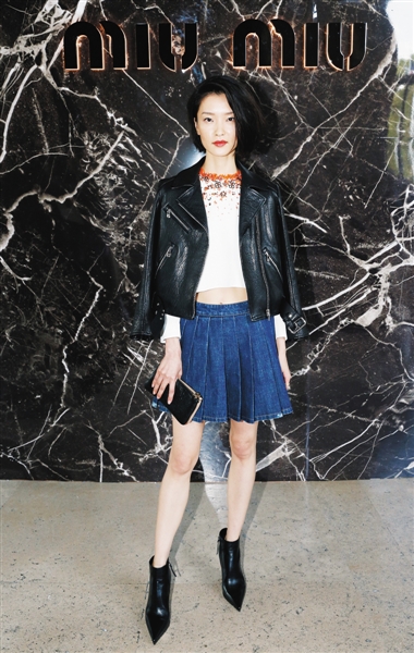 而在现场,最亮眼的就是身着Miu Miu早春系列黑色皮夹克搭配白色钉珠短上衣与牛仔短裙的名模杜鹃,她作为唯一的中国明星出席了此次时装秀,这也是杜鹃第二次受邀来到Miu Miu的秀场,她与英国女演员Imogen Poots相邻坐在头排,足以见品牌对其的重视。在秀后,Miu Miu还特地在巴黎Le Carmen举行了一场派对——杜鹃则以黑色领口镶红边的Miu Miu黑色皮夹克、箱形上衣搭配了红黑条纹长裙,非常时髦。