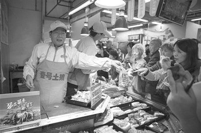 据一位工作人员介绍,这家名为“壹号土猪”的店铺是全国连锁,昨天共有12家店铺在京开张,赠送猪肉的目的是为了让市民品尝,“我们的猪肉价格是普通猪肉的一倍左右。”