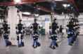 工作人员清理比赛结束后现场留下的大量垃圾。