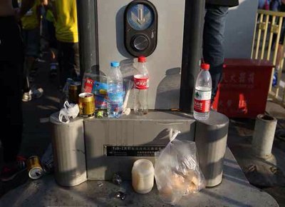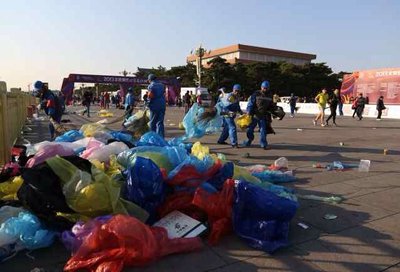 北京马拉松赛后现场留大量垃圾