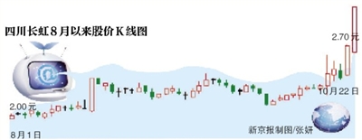 本月15日,长虹于四川绵阳召开发布会,长虹集团董事长赵勇正式发布长虹智能战略,宣布长虹将由一家传统智能家电制造商变为一家具有“互联网”基因的企业,随后长虹股价一路飘红,10月21日、10月22日连续两日涨停。