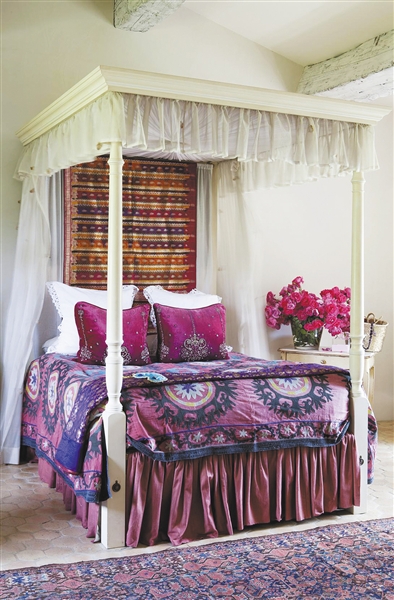 借鉴:花样图案的布艺床品可以瞬间营造出盛夏的活力,紫色的靠包或地毯,各种浓郁花朵的色彩都搭配起来也不为过。