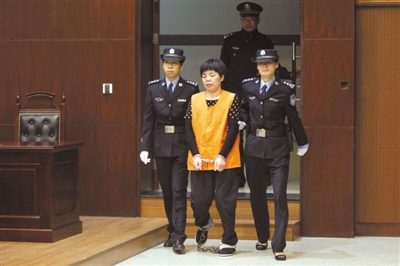 昨日,被告人李丽娟被带入法庭。当天,法院一审宣判,认定李丽娟犯放火罪,判处死刑,剥夺政治权利终身。新华社记者 鞠焕宗 摄