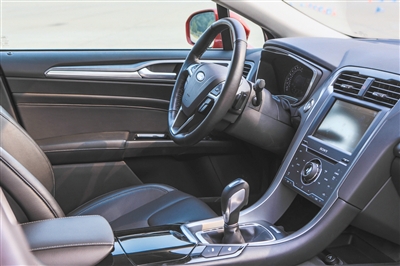 与前代车型相比,新蒙迪欧内饰有了翻天覆地的变化。豪华运动版采用了纯黑色内饰,更加注重运动基因。搭配的全皮质包裹辅料和钢琴漆、哑光银饰板衬托出华贵的气质。虽然是运动型,但这款车坐上去真皮坐椅支撑和包裹都很好,并不像运动车型坐椅偏硬的感觉。但相比运动型轿车,坐椅更偏向于舒适而非紧凑的包裹。整个车内装饰精致,前仪表盘上方中控台顶部,大量使用了皮质软面料。