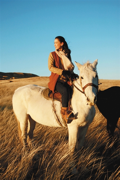黄圣依表示这次到草原拍戏,学会了骑马和喝酒。