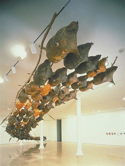 蔡国强:前两次在亚太三年展上创作的作品都没实现:1996年那次是合作的焰火公司发生的爆炸,1999年那次是99艘串在一起的小船沉到河底,这就留下了很多问题给我和美术馆方面。有问题大家就希望接着去解决,去挑战它。
