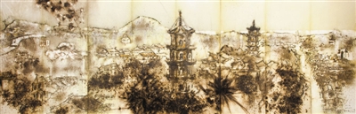 1 火药是蔡国强的画笔和颜料。创作火药画时,以牛皮纸打底,上覆“炸画”的麻纸,麻纸上再盖刻版。通常,蔡国强将所要创作的内容打好草图。
