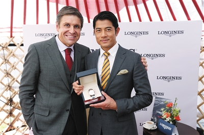 Juan Carlos Capelli与郭富城展示浪琴康铂系列男表。