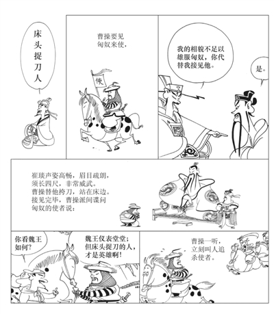 魏武将见匈奴使。自以形陋,不足雄远国,使崔季珪代,帝自捉刀立床头。既毕,令间谍问曰:“魏王何如?”匈奴使答曰:“魏王雅望非常,然床头捉刀人,此乃英雄也。”魏武闻之,追杀此使。