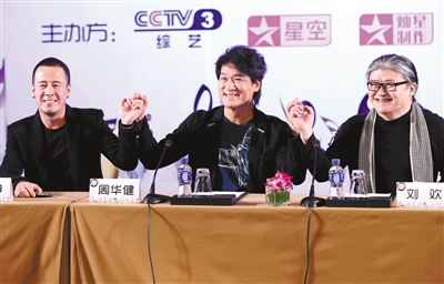 《中国好歌曲》导师杨坤、周华健、刘欢亮相。 新京报记者 郭延冰 摄