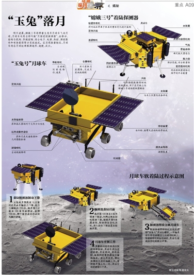 明天凌晨,嫦娥三号将带着玉兔号月球车飞向月球,月球车专用名称叫做“月面巡视探测器”,由移动、结构与机构、导航控制、综合电子、电源、热控、测控数传和有效载荷等分系统组成。在实现软着陆后,月球车将在月球虹湾探测地形、地貌、成分。