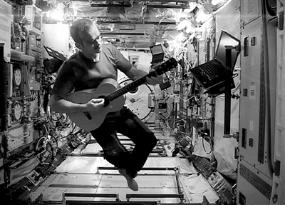 加拿大宇航员哈德菲尔德在国际空间站里表演太空MV。