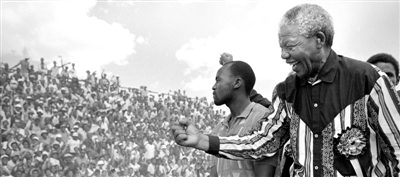 1994年2月,曼德拉为竞选拉票,那一年他当选总统。