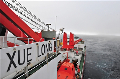 目前,“雪龙”号正航行在南纬66度45分、东经144度50分的南大洋清水区,海面只有零星浮冰,“雪龙”号以9节的航速轻松地航行在海面,继续踏上环南极洲的科学考察征程。