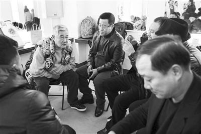 赵本山在《乡7》开播会的后台,给王小宝、蔡维利、唐鉴军(左起)等开会。新京报记者 郭延冰 摄