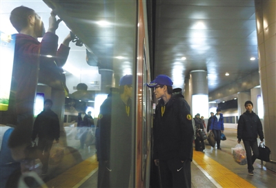 1月22日,北京西站派出所刑侦队职业反扒民警于俊戎一副便衣打扮,在列车前巡逻。她说,小偷最喜欢在两节车厢中间和旅客放行李时作案。