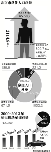 昨日,市统计局、国家统计局北京调查总队发布《北京市2013年国民经济和社会发展统计公报》。公报内容显示,北京中心城区人口聚集度有所降低,近半常住人口在功能拓展区。