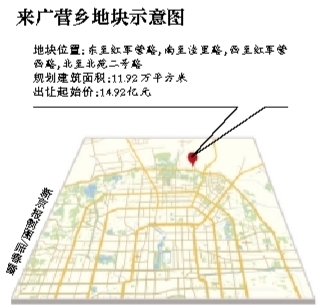 根据来广营新地块四至范围,记者发现该地块应为2012年9月份被暂停出让的来广营A2地块。市国土局也证实了该地块正是当初A2地块。2012年8月27日,来广营A2地块挂出,起始价为12.84亿元,多家开发商都曾关注该地块。