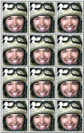 该作品由一个带有纵向抽屉的大型陈列柜组成,每个抽屉面板上是一整版阵亡士兵的头像邮票,这是整件作品的灵魂部分。照片上的他们或着军装或穿便服,相同的是一张张笑脸和难以置信的年轻。麦奎因说,“把阵亡士兵的肖像放到正式发行的邮票上,我认为这是一个亲切但却庄重的方式——突出了他们为了捍卫我们的国家,以生命为代价做出的牺牲。”