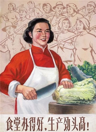 但好景不长,在所有关于“大办食堂好”的宣传画中出现的女炊事员其实并不能代表农民的饭勺子,真正握着饭勺子的是没有出现在宣传画上的公社干部;在宣传画上那些笑容可亲、菜热饭香的背后,充满着农民的不满。