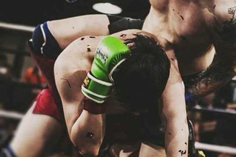 3月29日晚9时许,朝阳区劲松桥附近一家拳馆里,正在进行70到80公斤级综合格斗的冠亚军争夺战。