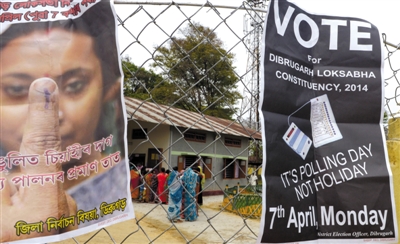 7日,东北部阿萨姆邦和特里普拉邦开始投票,揭开议会选举序幕,这6个选区的750万选民将选举产生人民院的6个席位,本次选举持续5个星期,分9个阶段进行。