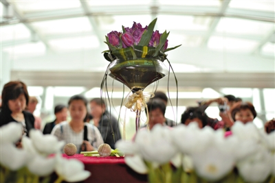 昨日,游客在国际鲜花港观赏由彭丽媛命名的“国泰”(Cathay)郁金香。国家主席习近平和夫人彭丽媛3月23日在荷兰国王威廉·亚历山大和王后马克西玛陪同下参观了中荷农业合作和荷兰郁金香花展。彭丽媛应邀将新培育的郁金香品种中文名命名为“国泰”郁金香。近日,北京国际鲜花港特意展出“国泰”郁金香。