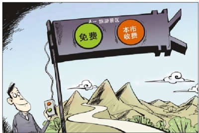 4月25日,河南省嵩县旅游局发布消息称,从5月1日起至10月31日,嵩县4个A级景区白云山、天池山、木札岭和卧龙谷将在全国范围实施免门票活动。但根据分时段对应城市优惠政策,河南的城市在“五一”期间不能享受免票优惠。这项政策引发争议,有人认为,在五一假期分时段、分对应城市的优惠,有失公平。(4月27日《新京报》)漫画/勾犇