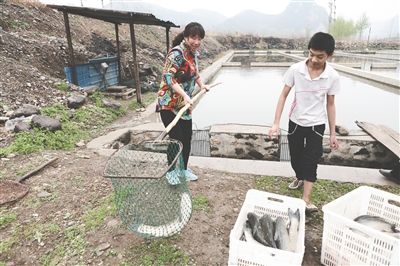 下坊村鲟鱼草鱼养殖场,“白河鱼宴”已成为村里旅游接待的醒目招牌。